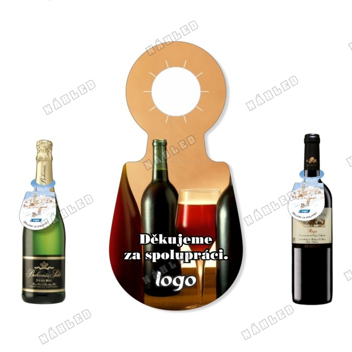 Visačka s obrázkem lahve a sklenky s červeným vínem